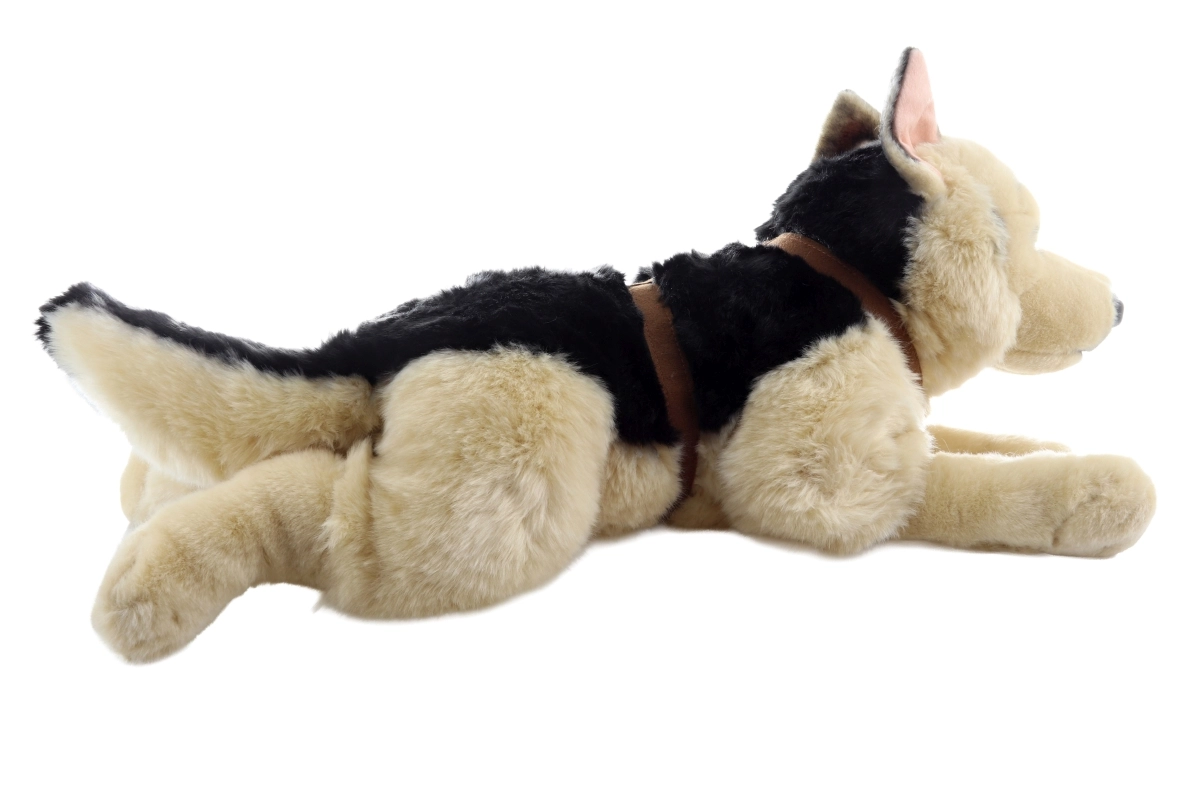 Deze elegante pluche Duitse herder met tuigje is een geweldige metgezel voor dagelijks spel en knuffelmomenten. De realistische uitvoering met rijke beige-zwarte vacht en opvallende oren oogt levensecht en spreekt zowel kinderen als volwassenen aan. Dankzij het aangenaam zachte oppervlak ligt hij fijn in de hand, biedt troost en is ook een decoratieve aanvulling voor de kinderkamer.