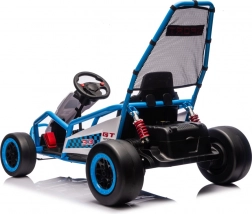 Het chassis met verstelbare achterste schokdempers en een bodemvrijheid van 12 cm kan oneffenheden aan, de sportstoel (36×22×33 cm) met veiligheidsgordels biedt comfort en zekerheid. Het audiopaneel met MP3, USB en Bluetooth speelt favoriete nummers af; er zijn ook voorgeprogrammeerde melodieën, knoppen met geluiden en een claxon. De accustatus-indicator waarschuwt je op tijd voor het opladen.