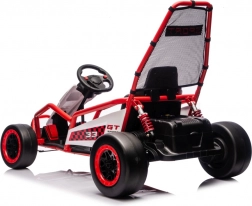 TORNADO is een sportieve elektrische kart voor kinderen die stabiliteit, vermogen en puur rijplezier combineert. Dankzij de voorste EVA-wielen en de achterste kunststof wielen voor drift genieten kinderen zowel van nauwkeurige koerscontrole als van gecontroleerde slippartijen. De zachte start beschermt jonge bestuurders tegen schokken en twee instelbare snelheden helpen het tempo af te stemmen op de vaardigheden van het kind.