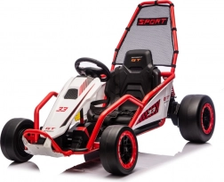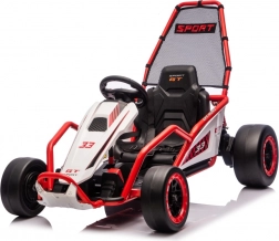 Start het plezier met de elektrische kinderkart TORNADO, met een driftfunctie, krachtige twee motoren 2×150 W en een betrouwbare 24 V 7 Ah accu. Voorste EVA-wielen voor grip, achterste kunststof driftbanden voor eenvoudige drifts, twee snelheden, soepele start en achterste verstelbare schokdempers zorgen voor een vloeiende en veilige rit. Inclusief audiopaneel met MP3/USB/Bluetooth, laadindicator en sportstoel met veiligheidsgordels.