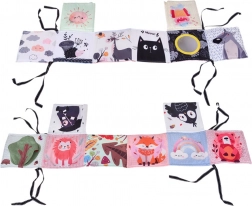 Lichte stoffen boekjes met kleurrijke en contrasterende motieven en een geïntegreerd spiegeltje ondersteunen visuele aandacht, nieuwsgierigheid en de eerste interacties van je baby.