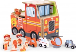 Voertuigen, helikopter, 2 brandweerlieden, een hond en meer accessoires laten kinderen hun eigen verhalen en scenario’s creëren.