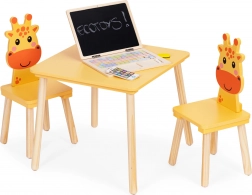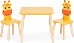 Creëer een magisch hoekje voor creatieve activiteiten. Het kindertafeltje met een breed, makkelijk afwasbaar blad en twee stoeltjes met rugleuningen in de vorm van een giraffe maken de ruimte gezelliger en stimuleren zelfstandigheid en een goede zithouding. Massieve houten poten en stevige afwerking zorgen voor een lange levensduur en veiligheid bij dagelijks gebruik.