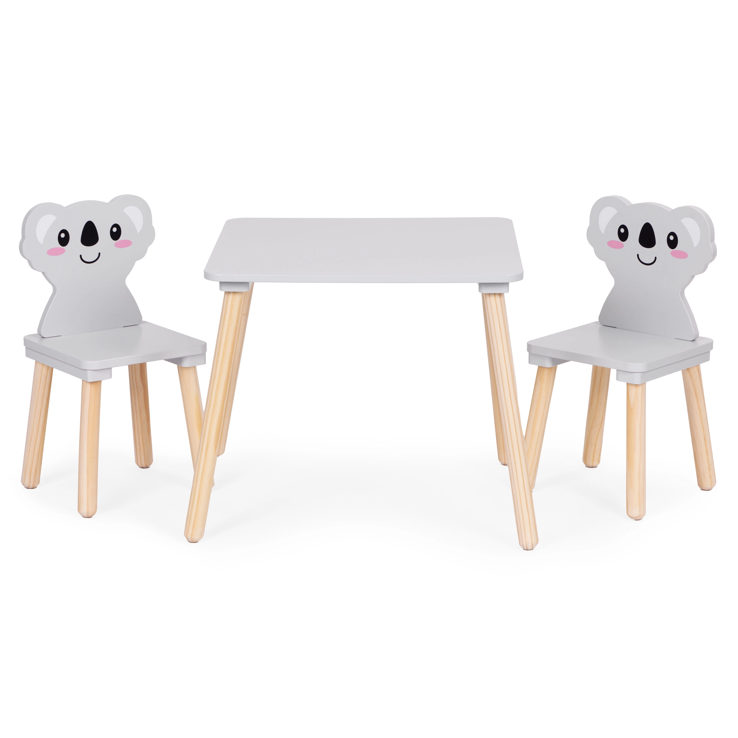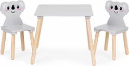 De ECOTOYS-meubelset verandert de kinderkamer in een creatieve speelhoek. Het brede tafelblad biedt volop ruimte om te tekenen, bouwen en knutselen en is makkelijk te onderhouden. De twee stoelen met koala-rugleuningen verrassen kinderen met een speelse look en ondersteunen tegelijk een goede zithouding.