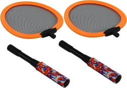 Lichte en duurzame set voor leuk badminton, buiten en binnen: twee rackets met een afneembare grip, een comfortabele foamhandgreep en een mesh slagvlak voor zacht contact met de shuttle. In de verpakking zitten 2 plastic shuttles. Ideaal voor kinderen vanaf 3 jaar, voldoet aan CE en EN71.