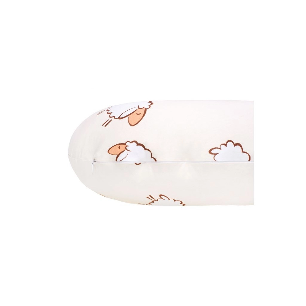 De hoes van 100% katoen is aangenaam en ademend, de vulling van hoogwaardige polyester behoudt zijn vorm en biedt zachte ondersteuning. De afneembare hoes maakt eenvoudig onderhoud en een langere levensduur van het product mogelijk. Het kussen is ook geschikt als steun tijdens de zwangerschap of als begrenzing voor de baby bij tummy time.