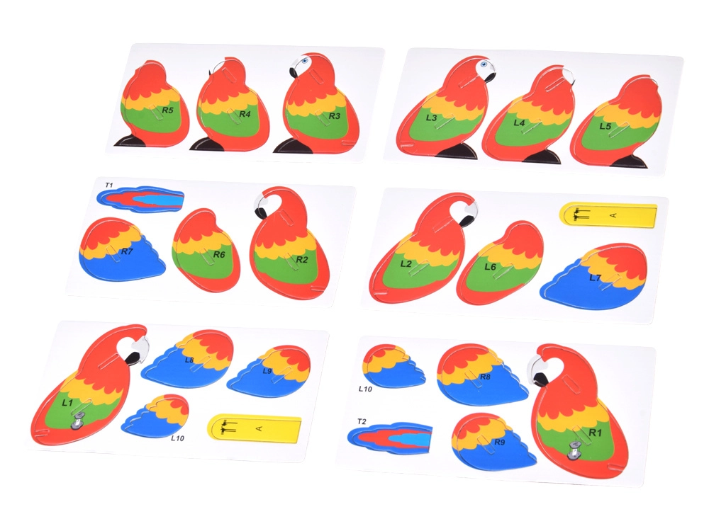 • Kartonnen onderdelen voor het 3D-model van een ara papegaai (24 stuks)