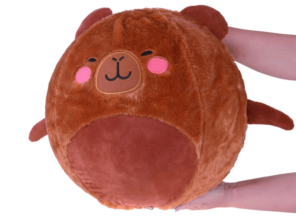 Schattige pluche bal in de vorm van een capibara met een diameter van ca. 45 cm, die bewegingsplezier en veilige fun combineert. Binnenin een elastische rubberkern voor geweldige stuiters, aan de buitenkant zachte pluche die prettig aanvoelt – ideaal voor kinderen vanaf 3 jaar, thuis, in de tuin en op de kinderopvang.