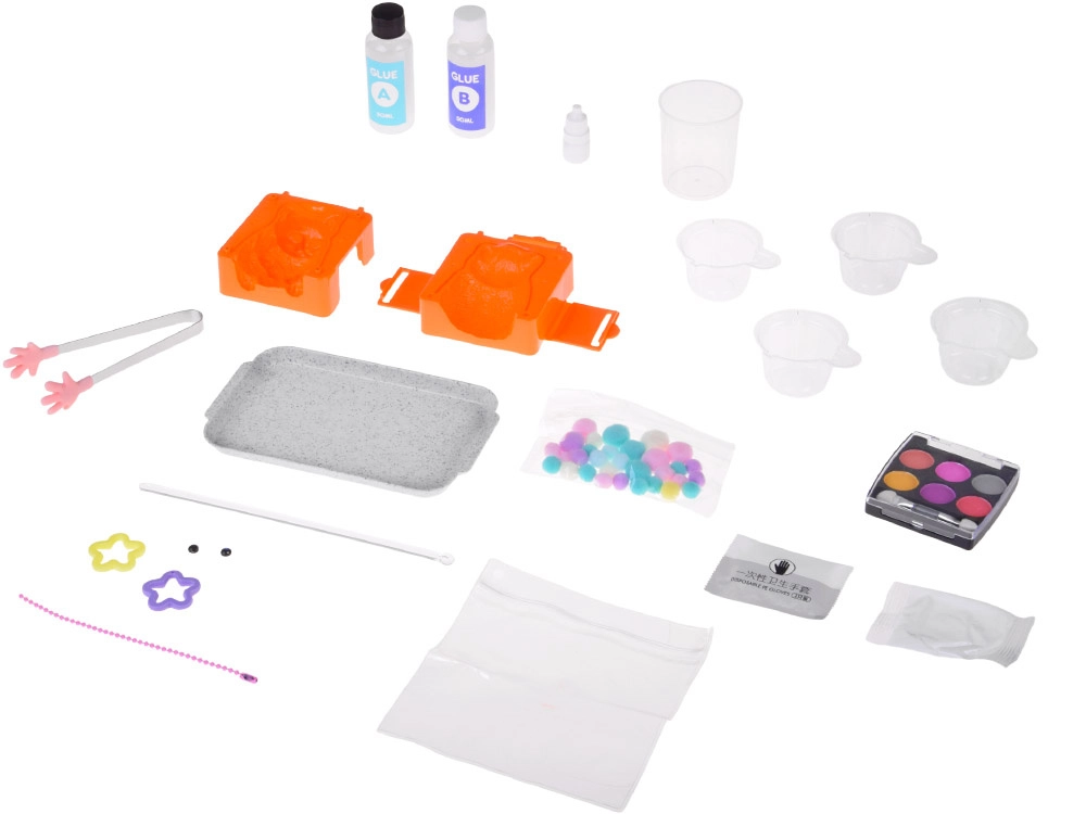 - Complete set – mal, lijmen A/B, kleurstof, tools en decoraties.