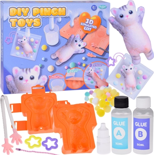 Ontdek een leuke DIY-set waarmee kinderen zelf een schattige kattenhanger maken. Ze mengen het materiaal, kleuren het in, versieren met pompons, sterretjes en zacht “pluis” en doen het klaar gemaakte katje in een sierzakje met kettinkje. Het resultaat is een antistress, zacht en fluffy talisman die ze overal mee naartoe kunnen nemen.