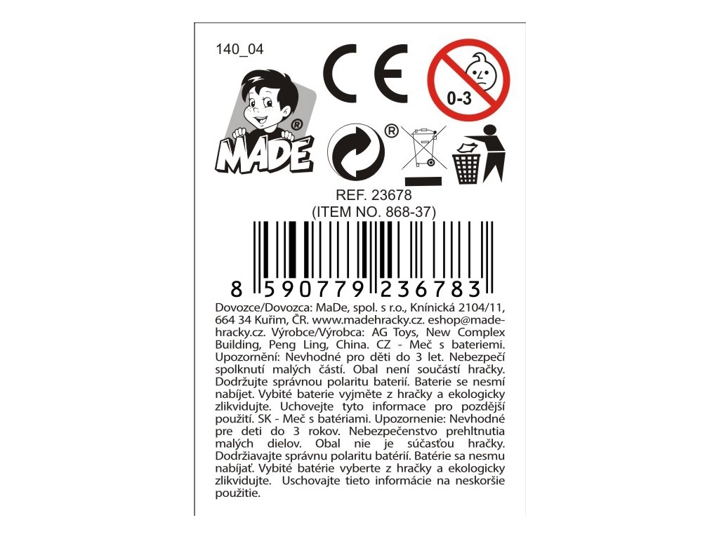 Het zwaard wordt geleverd in een displaydoos, wat het tentoonstellen en opbergen vergemakkelijkt. Praktische afmetingen zorgen voor een comfortabele grip en eenvoudige hantering, ook voor jongere kinderen.