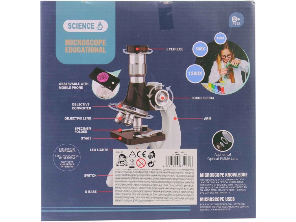 Geschikt voor kleine en grote ontdekkers vanaf 8 jaar – stimuleert nieuwsgierigheid, concentratie en de ontwikkeling van vaardigheden in de natuurwetenschappen. Plaats gewoon de batterijen, bereid een monster voor en begin de fascinerende details te verkennen die je met het blote oog niet ziet.