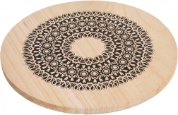 Stijlvolle houten onderzetter voor pannen met een diameter van 20 cm, beschermt tafel en werkblad tegen hitte en krassen. Hij is licht, duurzaam en versierd met een elegant mandala-motief in zwarte kleur. Ideaal voor dagelijks gebruik in keuken en eetkamer, en ook perfect voor het serveren van kleine hapjes. Een praktische, beschermende en universele keuze voor elk huishouden.