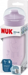Stijlvolle en praktische kinderfles NUK Mini-Me Sip met een inhoud van 300 ml, geschikt voor kinderen vanaf 9 maanden. Biedt een bijtbestendige tuit van meer dan 90% natuurlijke grondstoffen, een stevige roestvrijstalen behuizing, is lekkagevrij en eenvoudig te reinigen. De ideale metgezel voor onderweg en elke dag.