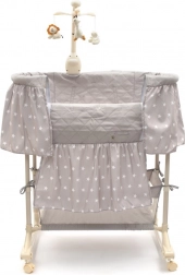 De multifunctionele wieg en het bedje NEW BABY is de ideale oplossing voor de dagelijkse zorg voor een pasgeborene. Biedt een viervoudige hoogteverstelling, gemakkelijk verplaatsen dankzij wielen met vergrendeling en de mogelijkheid om te gebruiken als klassieke wieg wanneer ze worden opgeklapt. Eén zijkant kan worden geopend, wat nachtelijk voeden en het kalmeren van de baby vergemakkelijkt. De ademende, aangename hoes kan eenvoudig worden verwijderd en gewassen.