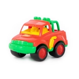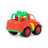 Kleurige en duurzame terreinwagen voor de allerkleinsten biedt veilige pret thuis en in de zandbak. Heeft afgeronde randen, een robuuste constructie en rolt en duwt comfortabel dankzij de grote wielen. Gecertificeerd vanaf 1 jaar, ideaal voor de ontwikkeling van fijne motoriek en fantasie.