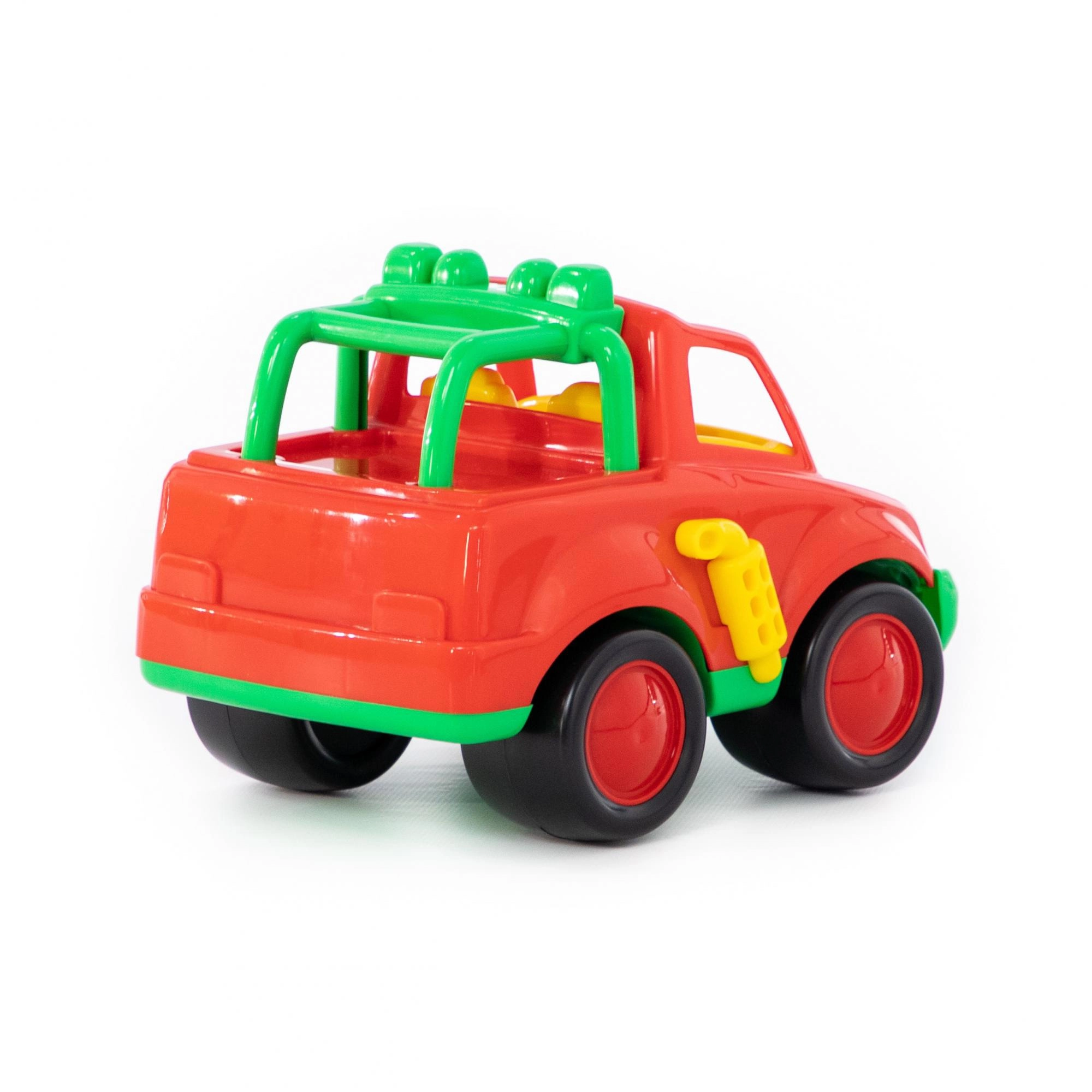 Ontdek de eerste terreinwagen die dagelijkse avonturen doorstaat. Dankzij duurzame kunststof en een chunky design is hij perfect voor kleine handjes. Heldere contrasterende kleuren prikkelen de waarneming en motiveren kinderen tot actief spel.