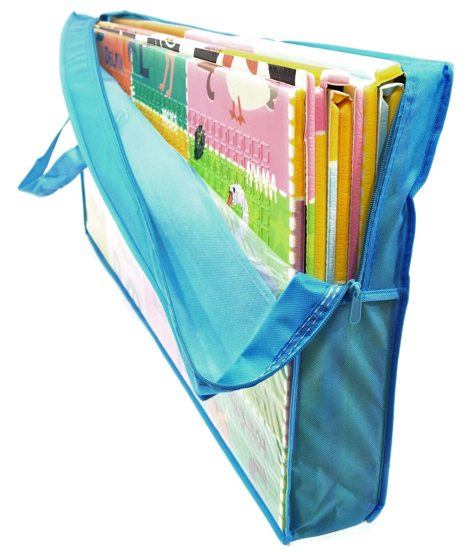 Dankzij de XPE-foam is de mat zeer licht, duurzaam, waterbestendig en geurloos. Het oppervlak kan eenvoudig worden afgenomen met een vochtige doek. De mat dempt vallen, isoleert tegen kou en creëert een comfortabele plek voor tummy time, zitten, kruipen en lopen. Het opvouwbare design en de tas met rits maken opbergen en vervoeren gemakkelijk.