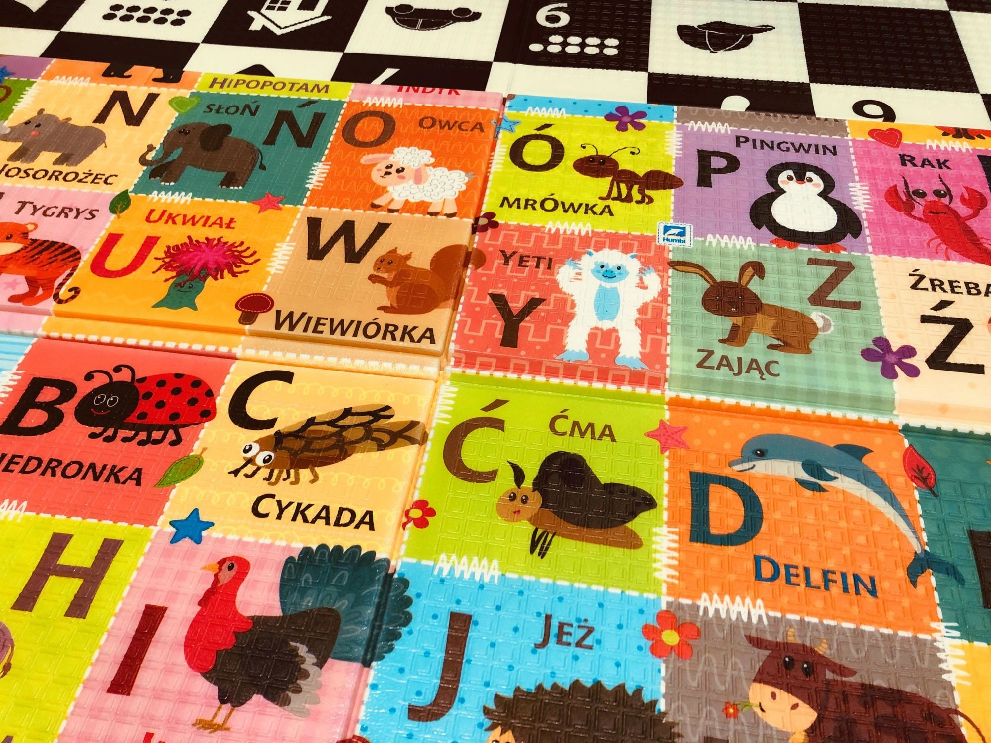 Ontdek de praktische en veilige speelmat voor kinderen vanaf de geboorte: de dubbelzijdige foam mat HUMBI met afmetingen 197 × 177 × 1 cm combineert een alfabet met plaatjes, cijfers met stippen en contrastrijke motieven voor zowel zichtontwikkeling als leren. Ze is zacht, waterbestendig, geurloos, gemaakt van XPE, dat schokken absorbeert en kou van de vloer isoleert. Eenvoudig op te vouwen, schoon te maken en ideaal voor spelen, kruipen en de eerste stapjes.