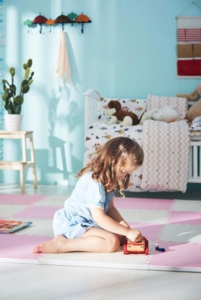 EVA-schuim is waterdicht, houdt geen stof of mijten vast en is eenvoudig schoon te maken met een vochtige doek – ideaal voor de kinderkamer.