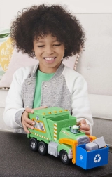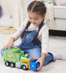 Ga op reddingsmissie voor een schonere stad met Rocky en zijn groene recyclingwagen. Kinderen kunnen de blauwe bak optillen, “afval” laden en leren sorteren. Authentieke details uit de serie Paw Patrol stimuleren de fantasie en rollenspellen.