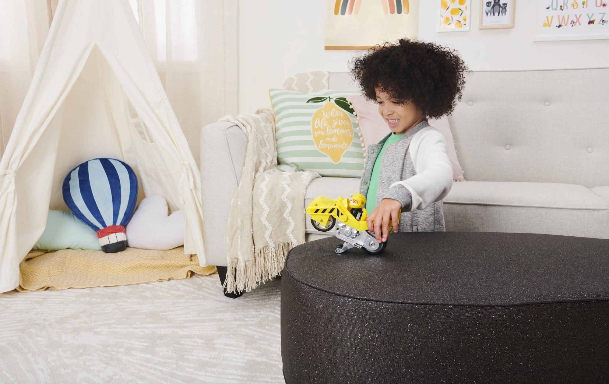 Dankzij de extra steunwieltjes kan de motor een spectaculaire wheelie maken – rijden op het achterwiel. Zet het Rubble-figuurtje in het zadel en ga op avontuur dat de fantasie, fijne motoriek en liefde voor favoriete helden stimuleert.