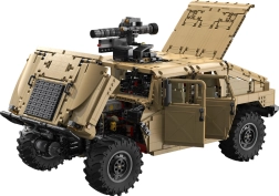 Dit grootschalige HUMVEE-model op schaal 1:8 zal veeleisende bouwers en liefhebbers van technische bouwsets aanspreken. Realistische details omvatten de grille, motorruimte, dashboard, stuur, buitenspiegels, dubbele voorstoelen en een doordachte bagageruimte. Met het handmatige draaiknopje kun je de koepel draaien, de granaatwerper afvuren en het machinegeweer laten draaien.