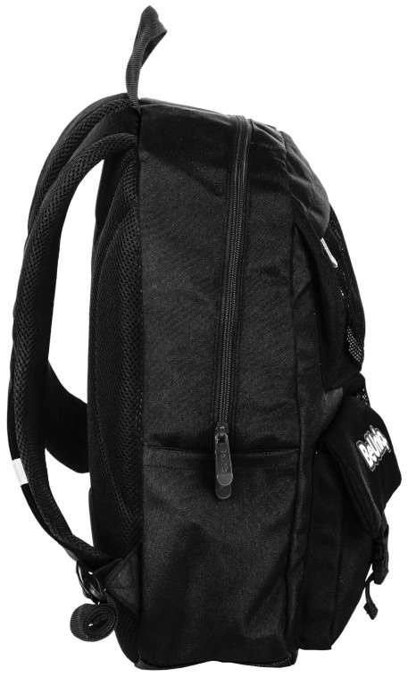De praktische indeling omvat één hoofdvak met rits geschikt voor boeken en schriften in A4-formaat, drie voorvakken met rits voor kleine spullen en twee stoffen zijvakken voor een fles of bidon. De rugzak heeft een verstevigde bodem, een bovenhandvat voor gemakkelijk dragen en verstelbare schouderbanden voor een perfecte pasvorm.