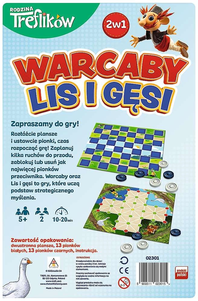 Ontdek een leuke set bordspellen met thema’s uit de serie RODINA TREFÍKŮ – dammen en vos en ganzen in één doos. Kinderen oefenen strategisch denken, zetten plannen en fair play. Kwalitatieve afwerking van het merk TREFL, gemaakt in Polen, ideaal voor 2 spelers vanaf 5 jaar met een speeltijd van 10–20 minuten.