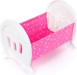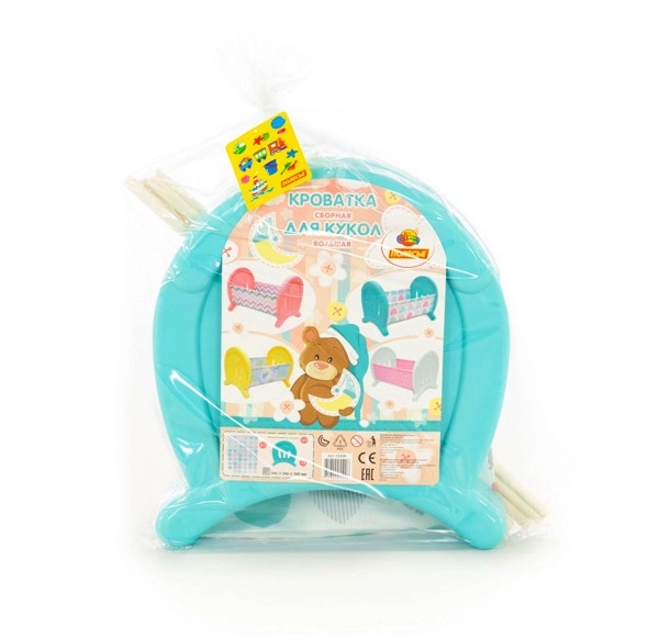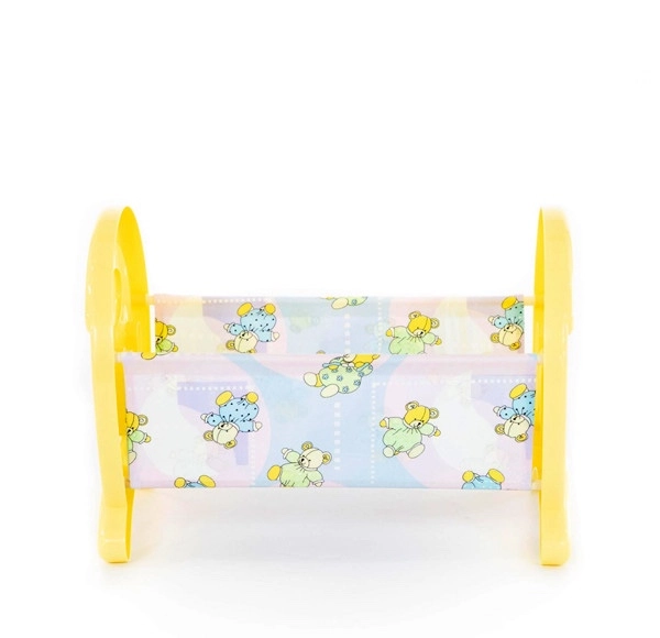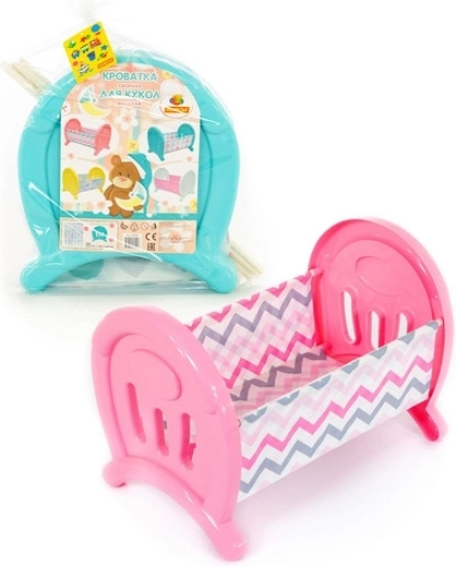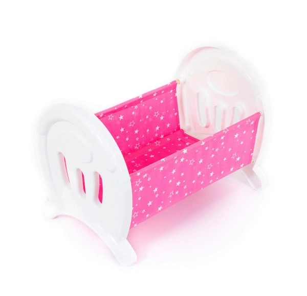 Het opvouwbare poppenbed combineert stevige kunststof eindpanelen met een zacht textiel bedje, waardoor het licht maar tegelijk stabiel is. Kinderen kunnen de pop comfortabel neerleggen en haar zachtjes in slaap wiegen, wat de fantasie en verzorgende vaardigheden stimuleert.