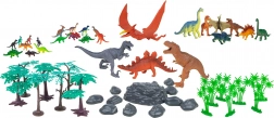 Vier grote figuren (waaronder T‑Rex en een pterosauriër), zeven middelgrote, zestien kleine plus bomen en rotsen. Bouw je eigen prehistorisch landschap en verzin je verhalen.