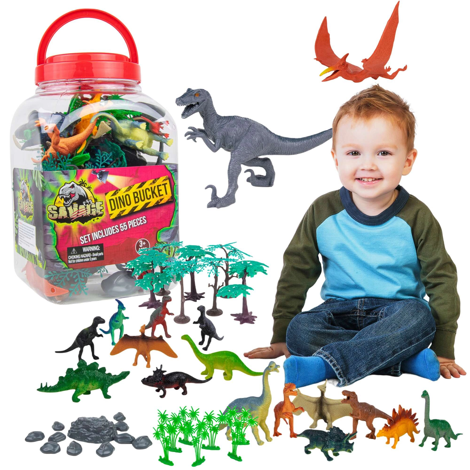 Alles is overzichtelijk opgeborgen in een afsluitbare emmer met handvat, ideaal voor thuis en onderweg. Perfect als cadeau voor kinderen vanaf 3 jaar – uren speelplezier en een geweldige basis voor het bouwen van een eigen prehistorische wereld.