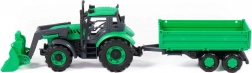 De set bevat een bakaanhanger die eenvoudig kan worden aangekoppeld en waarmee speelgoed, zand of blokken vervoerd kunnen worden. De openende motorkap met vergrendeling verhoogt het realisme en leert kinderen zorgvuldigheid bij de “service” van de machine.