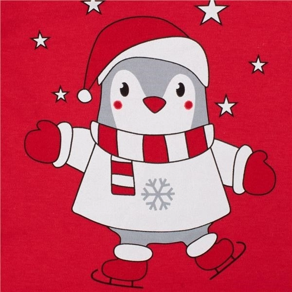De praktische drukknoop op de schouder maakt aankleden gemakkelijker, terwijl de elastische haarband mooi bij het jurkje past en de outfit compleet maakt. Het schattige winterse pinguïn-motief en de opvallende rode kleur geven de kleding een speelse look.