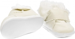 Deze beige babyslofjes van eco-suède houden voetjes warm dankzij de zachte fleece voering (100% polyester). De aansluitende pasvorm, ruime binnenkant en klittenbandsluiting maken aan- en uittrekken gemakkelijk en zorgen voor een zekere, niet-knellende grip.