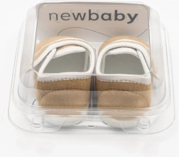 Stijlvolle en functionele New Baby slofjes in het bruin, ontworpen voor het comfort van pasgeborenen. De praktische klittenbandsluiting maakt aan- en uittrekken gemakkelijk, de slofjes sluiten goed aan op het voetje en dankzij de ruimere binnenruimte worden tenen en spieren niet belemmerd.