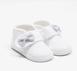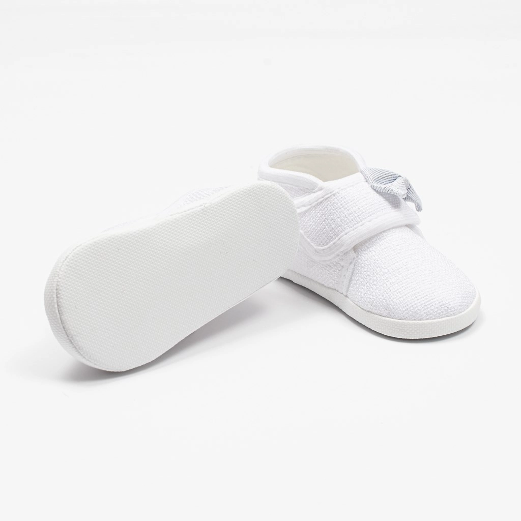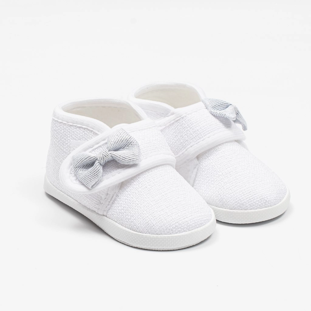 Deze schattige New Baby slofjes in het wit met een decoratief strikje zijn een geweldige keuze voor dagelijks gebruik van je kleintje. Dankzij de klittenbandsluiting zijn ze eenvoudig aan te trekken en blijven ze goed aan het voetje zitten. Lichte constructie en een ruime binnenkant geven teentjes en spieren voldoende ruimte voor natuurlijke beweging.
