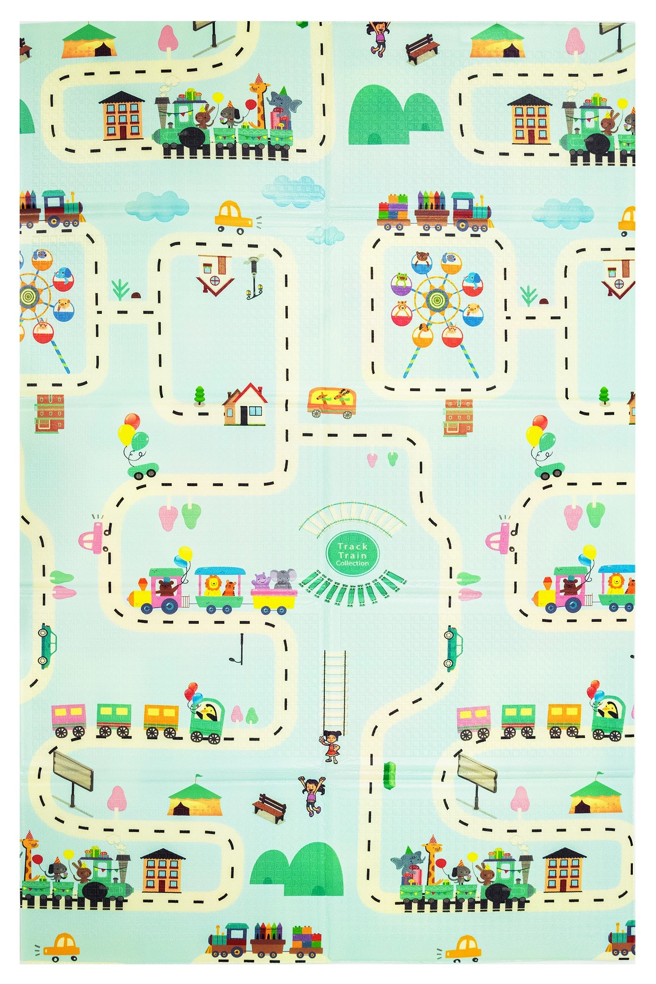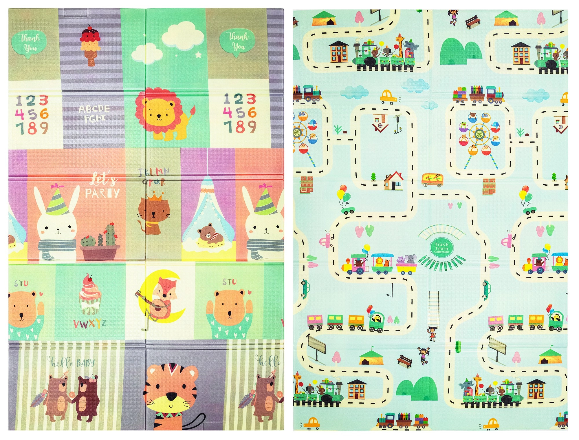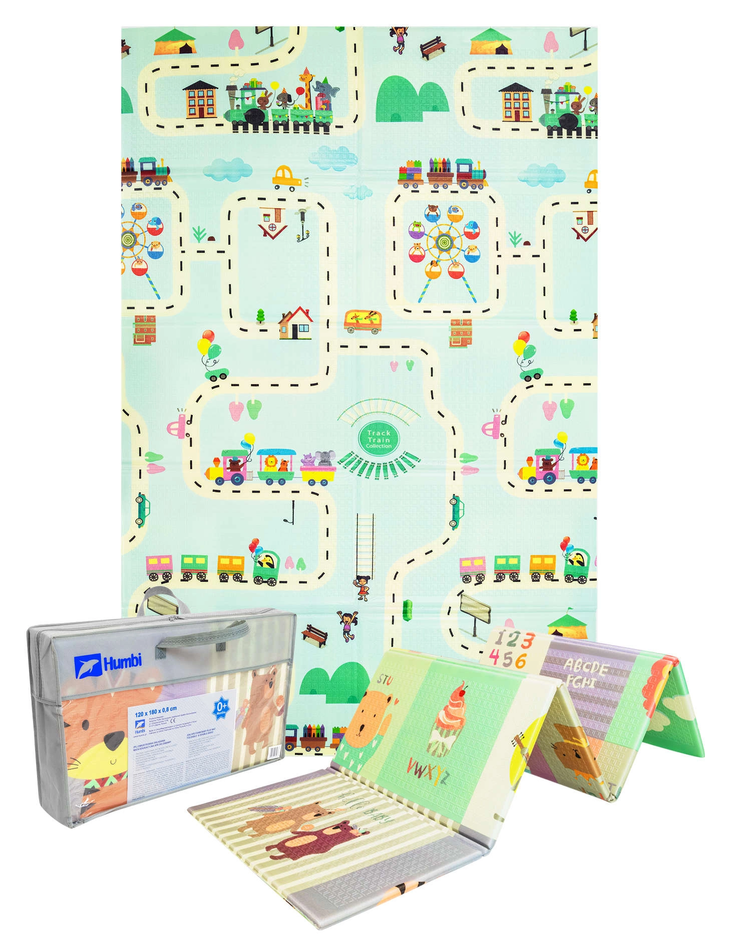 Opvouwbaar dubbelzijdig XPE-schuim speelkleed HUMBI 120 × 180 × 0,8 cm – diertjes en straatjes