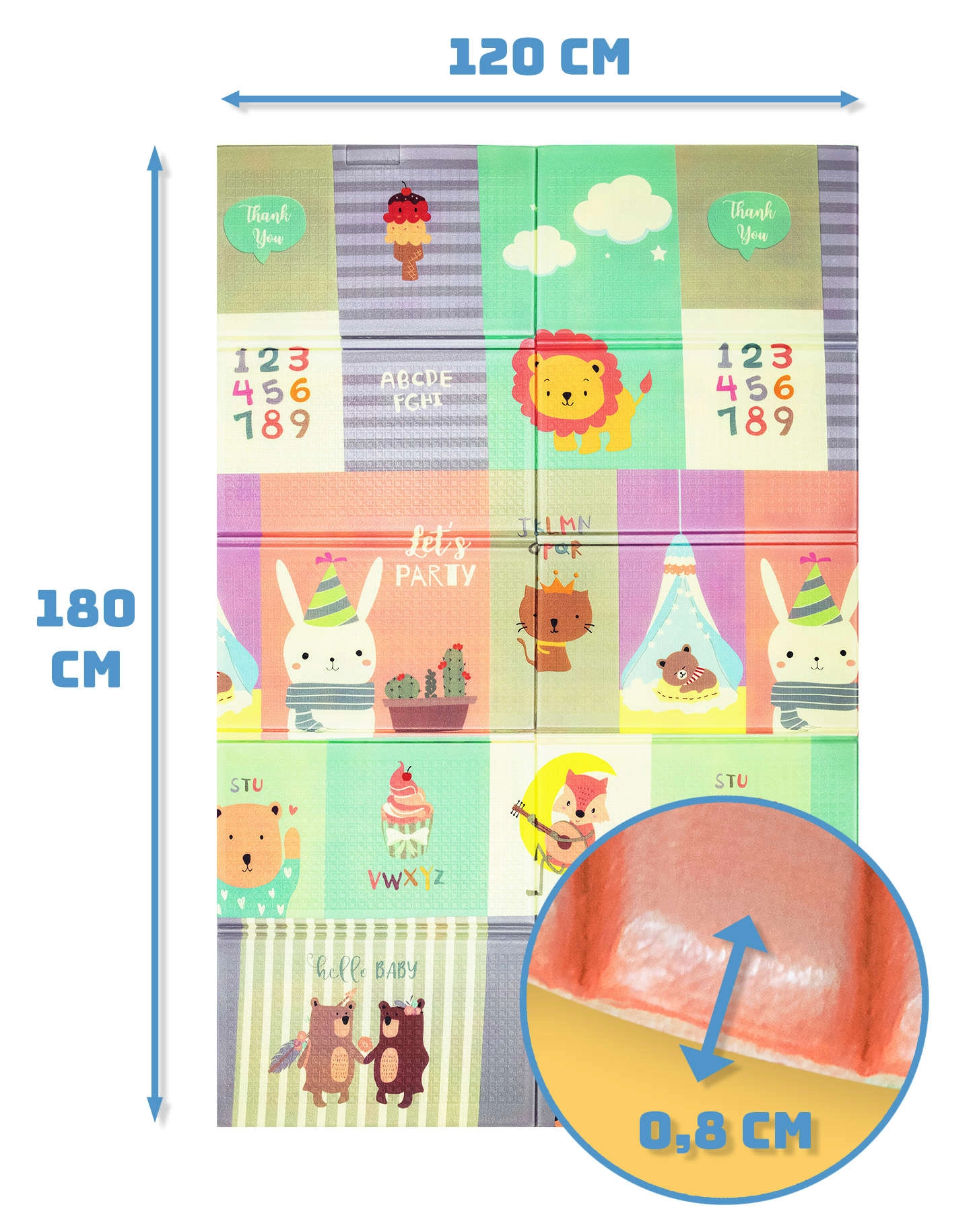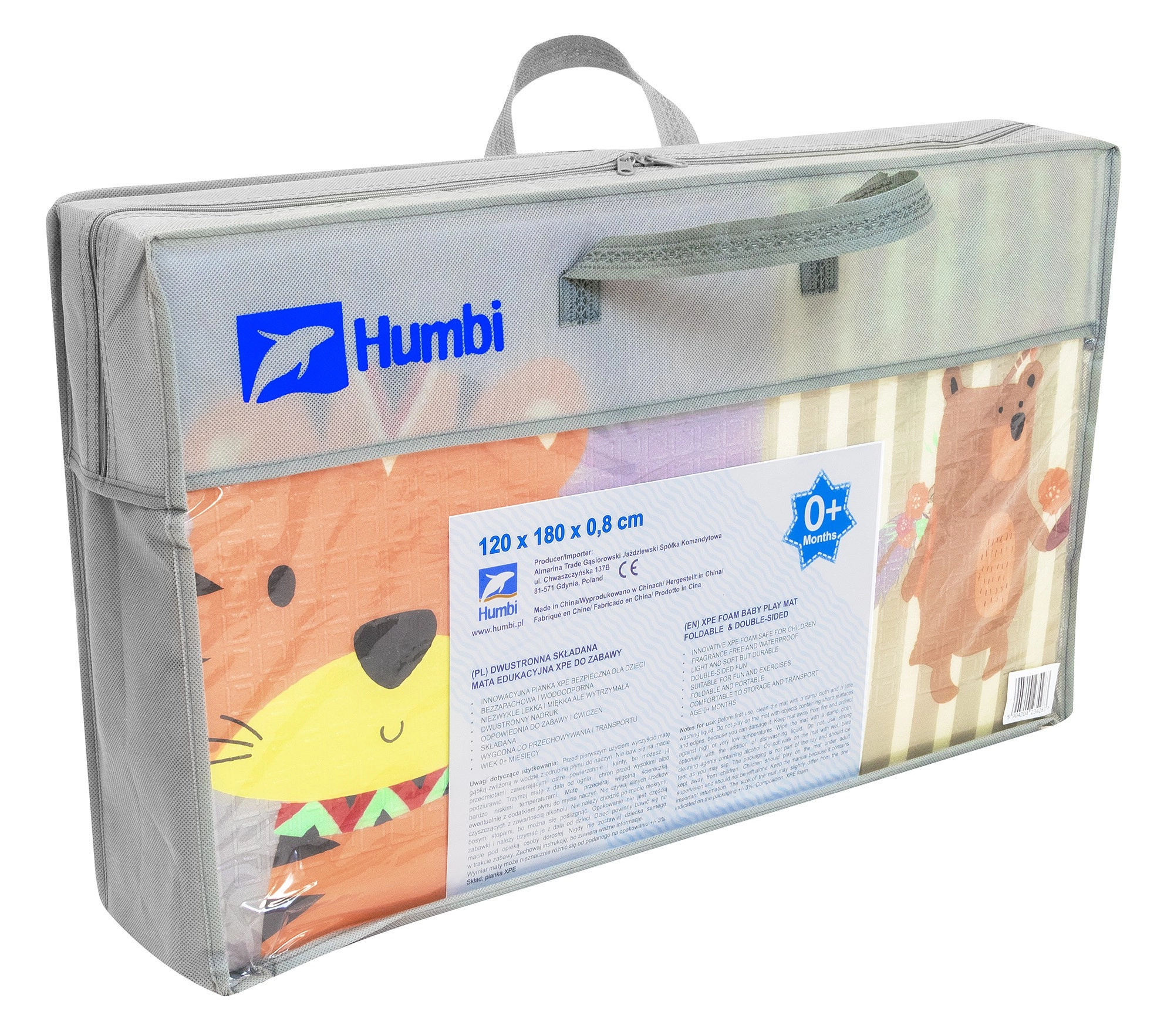 Praktische en comfortabele mat voor baby’s en kinderen van premium XPE-schuim biedt een zachte, veilige en hygiënische plek om te spelen, kruipen en de eerste stapjes te zetten. Hij is dubbelzijdig met educatieve motieven, opvouwbaar voor eenvoudige opslag, waterdicht en makkelijk te reinigen. In de verpakking zit een praktische draagtas.