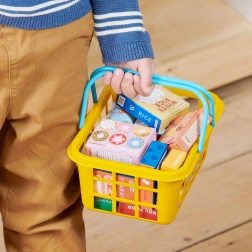 Deze kwaliteitsset van CASDON is ontworpen voor kleine liefhebbers van winkeltje spelen. De mand is licht, duurzaam en veilig voor kinderhanden en qua formaat aangepast aan kinderen. Binnenin vind je een gevarieerde selectie realistisch bedrukte doosjes en blikjes, die verbeelding en communicatieve vaardigheden prikkelen.