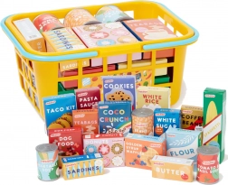 Gele winkelmand CASDON met etenswaren voor kinderen 3+