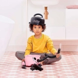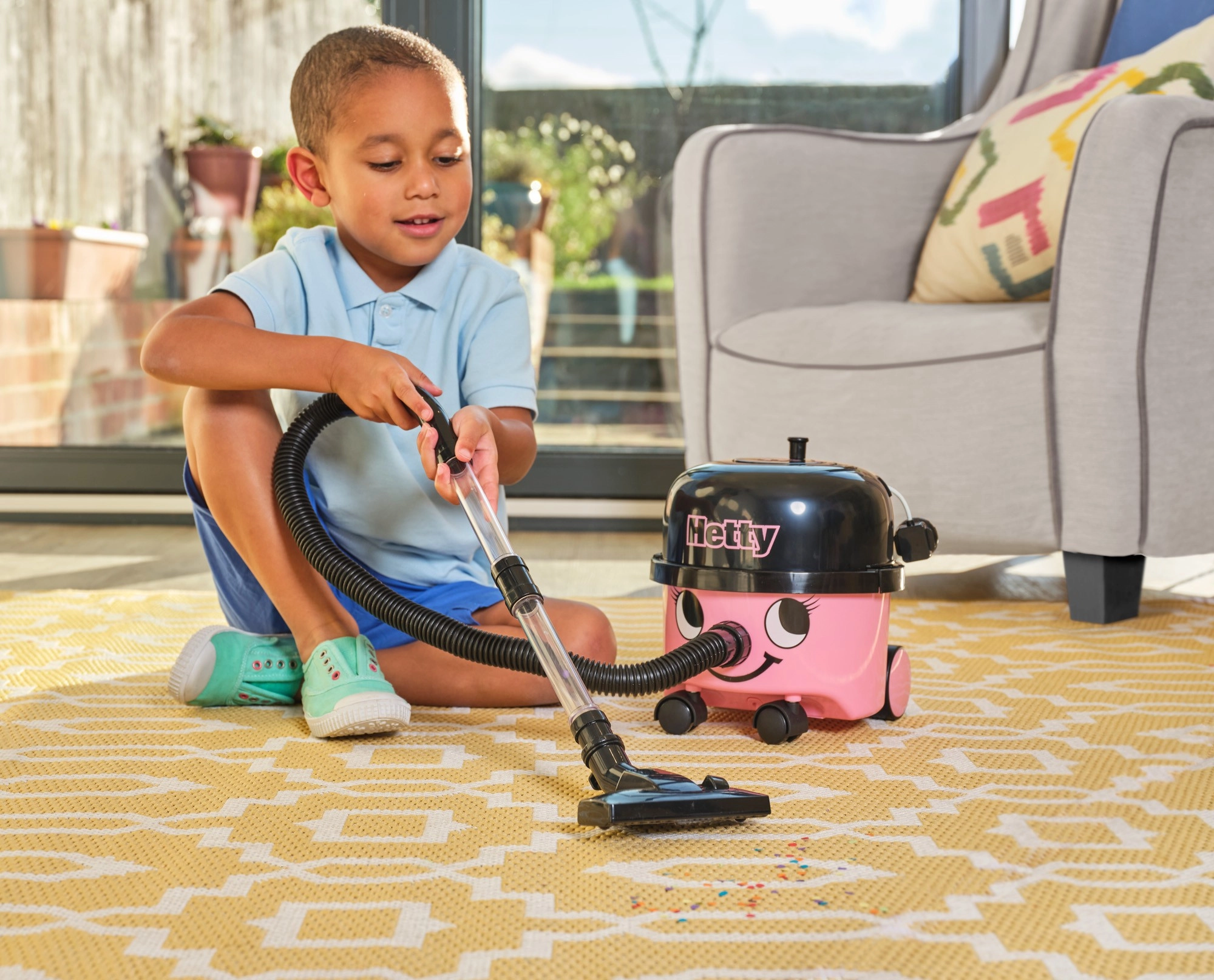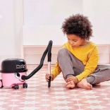 De kinderstofzuiger HETTY is een stijlvolle helper in roze-zwart met een vrolijk gezichtje, die kinderen motiveert om volwassenen na te doen en verantwoordelijkheidsgevoel en fijne motoriek ontwikkelt. Dankzij de zachte zuigfunctie kan hij kleine en lichte deeltjes opzuigen, zoals piepschuimbolletjes, confetti of kruimels.