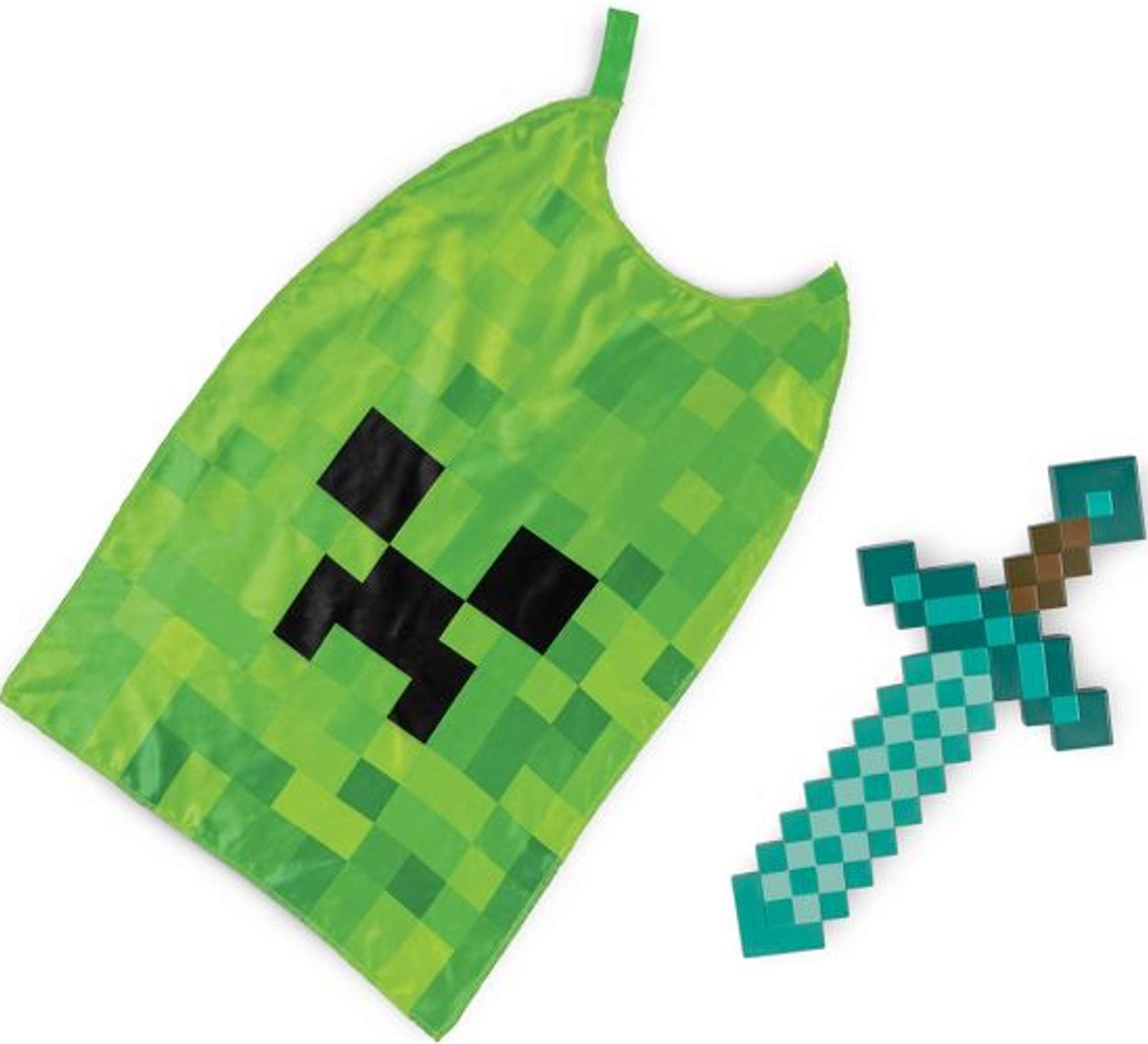Stap de wereld van Minecraft binnen met de originele set van het merk Disguise: een kunststof diamanten zwaard met ergonomische greep en een cape met Creeper-gezicht. Kinderen zullen het authentieke “pixel” uiterlijk en het makkelijke draagcomfort van de cape meteen waarderen.