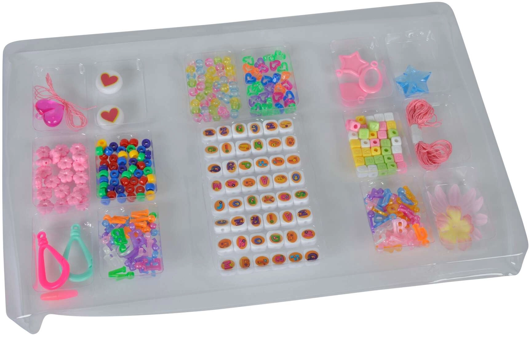 Met deze creatieve set kunnen kinderen eenvoudig persoonlijke armbanden, kettingen en bedels ontwerpen en maken. Dankzij de combinatie van letterblokjes, ronde kralen en kleurige versieringen ontstaan prachtige sieraden met namen, berichtjes of favoriete motieven.