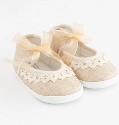 Schattige New Baby babyslofjes in een kanten uitvoering die elke kleine dame zal bekoren. Ze zijn licht, comfortabel en blijven dankzij de veters goed aan het voetje zitten. Brede binnenzijde zorgt voor vrije teenbeweging, de dunne flexibele zool van BPA-vrij PVC is ideaal voor baby’s die nog niet lopen. Binnenzoollengte 11 cm, geschikt voor 3–6 maanden, geleverd in een praktische doos.