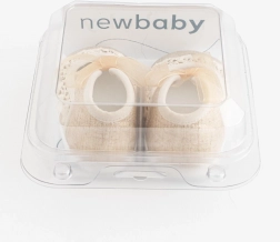 Stijlvolle baby slofjes van New Baby in het bruin, ontworpen als schattige meisjessandalen met vetersluiting. Ze zijn lichtgewicht, hebben een brede binnenruimte voor vrije beweging van tenen en spieren, en een dunne synthetische zool. Het product is niet bedoeld om op te lopen. Geleverd in een praktische geschenkdoos.