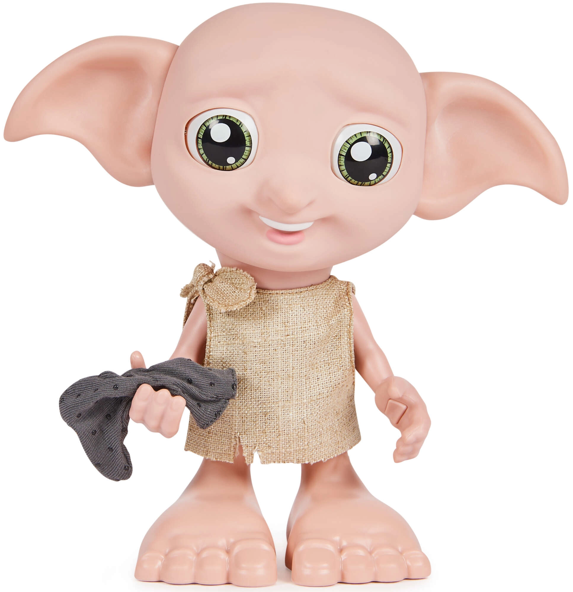 De interactieve figuur DOBBY vangt het filmpersonage getrouw – grote groene ogen, opvallende oren en een eenvoudige stoffen tuniek. Dankzij de gearticuleerde ledematen en het gezicht kun je hem eenvoudig in verschillende poses zetten om mee te spelen of tentoon te stellen. Met één druk op de knop op de linkerarm activeer je 35 zinnen en melodieën uit de toverwereld.