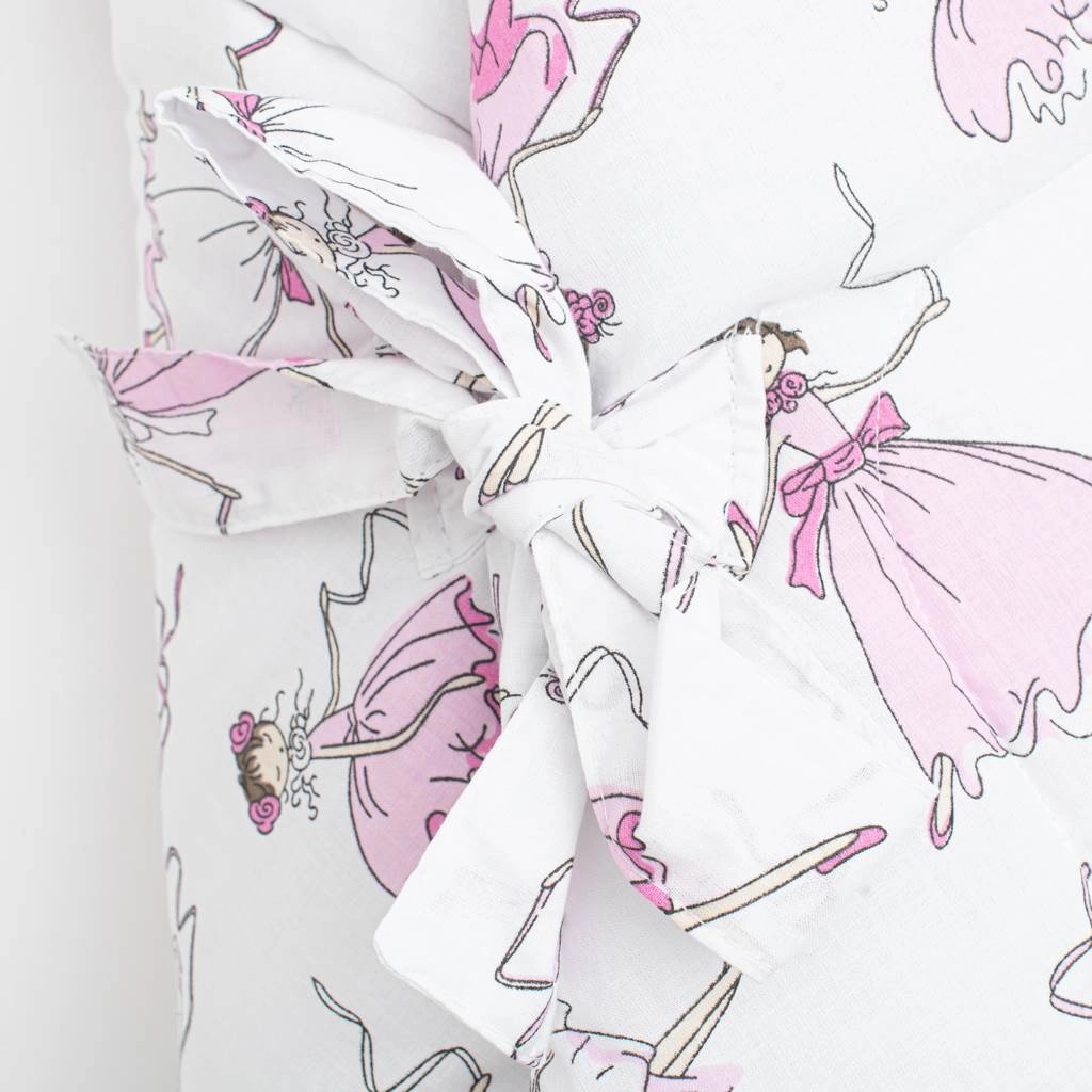 Veiligheid staat voorop: geen knopen of kleine onderdelen, met een eenvoudige en stevige klittenbandsluiting. De neutrale, rustgevende ballerina-print past perfect bij een uitzet voor meisjes. De inbakerdoek is onderhoudsvriendelijk en kleurvast.