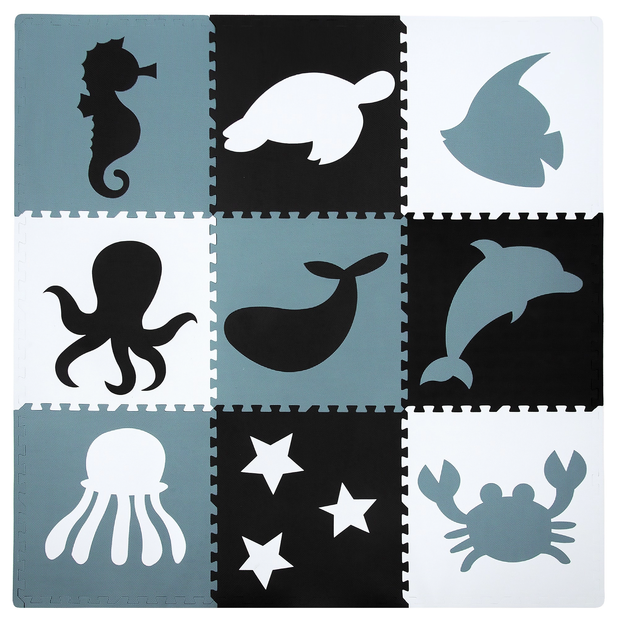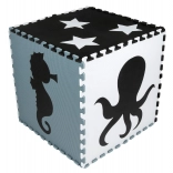 Neutrale, rustige kleuren leiden kinderen niet af tijdens het spelen en passen in elk interieur – kinderkamer, speelkamer of kinderopvang. Uitneembare middenstukken met vormen (zeepaardje, schildpad, vis, kwal, walvis, octopus, dolfijn, sterren en krab) ondersteunen de ontwikkeling van motoriek en het leren van dieren. Onderdelen kunnen uitgebreid worden (binnen hetzelfde model) en tot een kubus of andere 3D‑vormen worden opgebouwd.