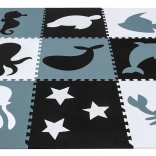 De mat van elastisch EVA‑foam is vrij van ftalaten, formamide, BPA en PVC, voldoet aan EN 71 en REACH en draagt het CE-merk. Dankzij de dikte van 1 cm isoleert hij uitstekend tegen kou en absorbeert hij valpartijen, ideaal voor parket, tegel- en laminaatvloeren. Het waterbestendige en gemakkelijk afneembare oppervlak houdt geen stof of mijten vast – afnemen met een vochtige doek is voldoende.